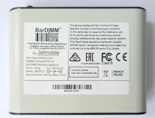 The BarDIMM Box adds BarDIMM intelligent barcoding capability to PCL5 network printers that do not accept the BarDIMM Pro USB stick.